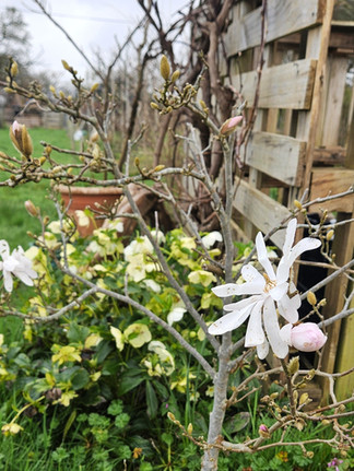 The cherry trees in the garden are now flowering and looking really lovely adding a pop of colour to the garden. If you're coming to visit in March, you'll see a few colours popping up around the place.